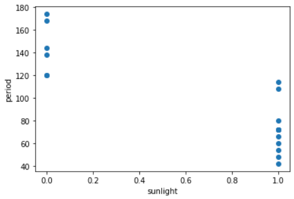 1. 햇빛 유무와 기간간의 관계